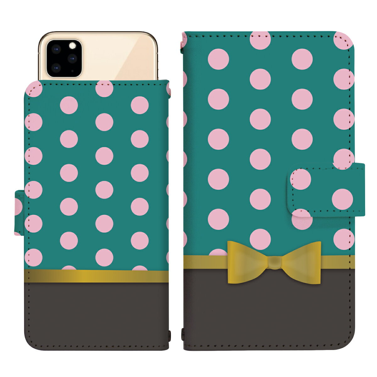 SHV42 AQUOS R2 アクオスアールツー au エーユー 手帳型 スマホ カバー カバー レザー ケース 手帳タイプ フリップ ダイアリー 二つ折り 革 004986 水玉 リボン ドット