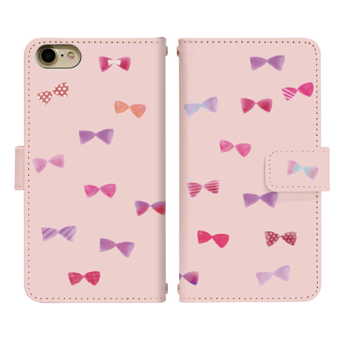 iPhone7 (4.7) 手帳型ケース iPhone7 猫 ドット ネコ ヒゲ メガネ リボン スマホケース 手帳型 スマホカバー e022404_02 各社共通 アイフォン あいふぉん