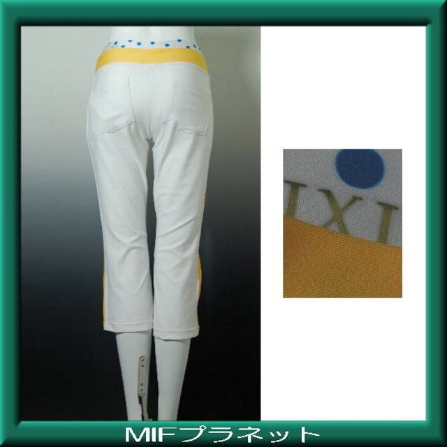 (基色とウエスト切替え部分からドット模様とライン色の生地が2重になっていて、ドット模様のほうが長めです) すそサイドスリット6cm入り、後ろ左右ポケット付き、ドット模様のウエスト後ろ左側に【IXI】プリント付きです。