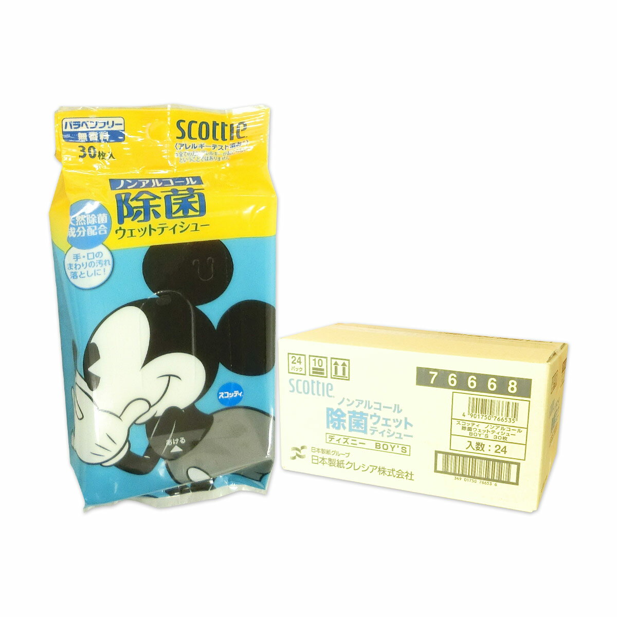 スコッティ ノンアルコール 除菌ウェットティシュー ディズニー Boy's 30枚 × 24パック 【日本製紙クレシア】【76668】