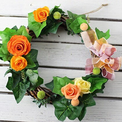 【ふるさと納税】アイビーとバラのリース オレンジ系 プリザーブドフラワー 【植物】