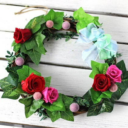 【ふるさと納税】アイビーとバラのリース レッド系 プリザーブドフラワー 【植物】