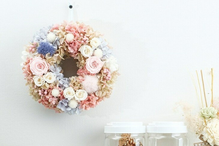 【ふるさと納税】新感覚の癒し空間 ミンクファー入りプリザーブドフラワーリース Mサイズ