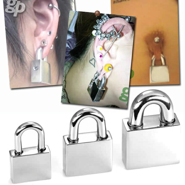 [ おもしろ ボディーピアス ] 南京錠ボディピアス 8ゲージ 8G 6ゲージ 6G 4ゲージ 4G 0ゲージ 0G ボディピアス サージカルステンレス316L 低アレルギー メンズ レディース 耳 軟骨 ニップル 乳首 カギ パドロック 鍵 オモシロ 面白い 重たい 大きい ユニーク 個性 SM風
